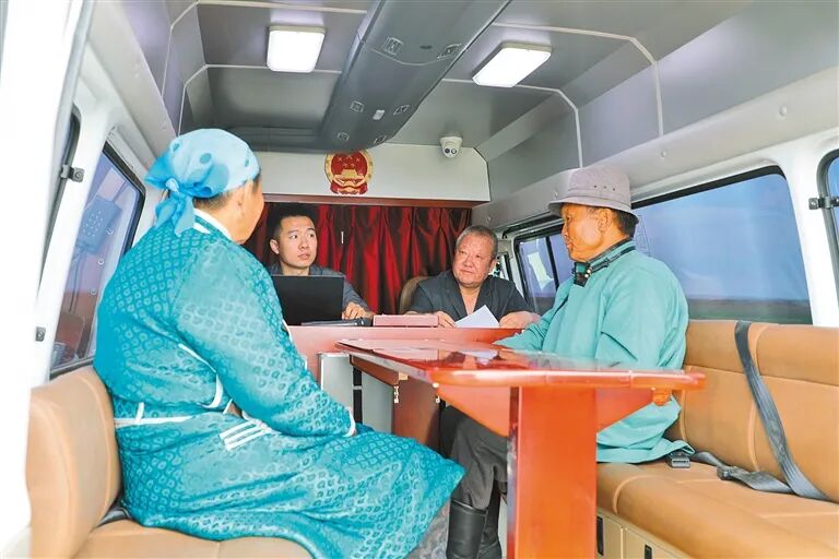 乌兰察布市四子王旗人民法院牧区巡回法庭克服交通不便等困难,用心用情处理群众纠纷。杨柳 摄