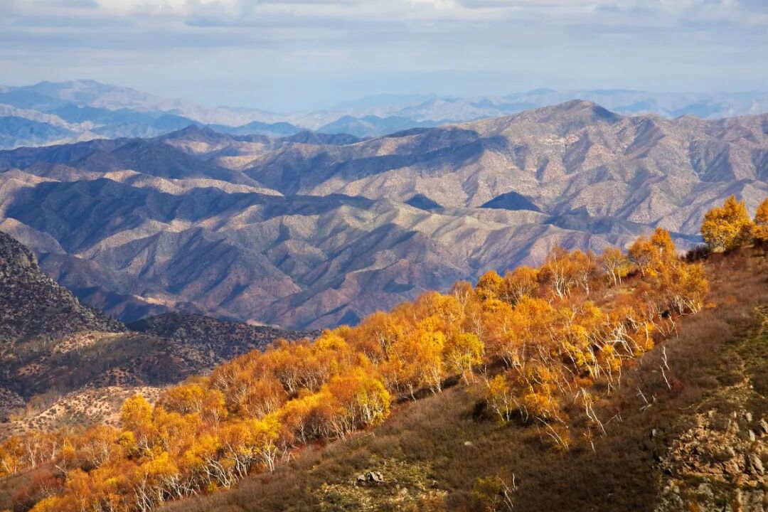 秋日里满山的树木红黄绿各色交错