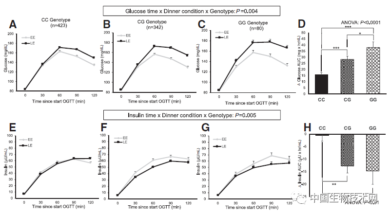每个参与者在禁食8小时后,分别在两个晚上口服75克葡萄糖饮料,以模拟早期和晚期晚餐时间进食。研究人员测试了两组参与者在2小时内(每30分钟一次)的葡萄糖耐量,以及MTNR1B G等位基因携带者与非携带者之间的差异。