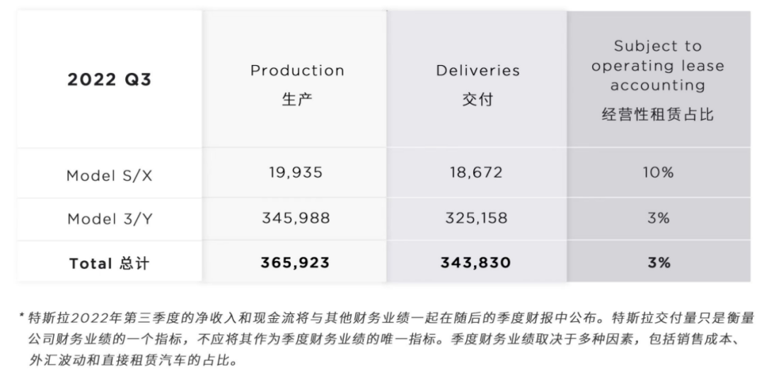10 月初,特斯拉公布交付数据显示,三季度交付 343830 辆,创纪录新高。可惜的是,这一历史性数字仍旧低于华尔街的预期。在华尔街眼中,这凸显了全球经济疲软与可能到来的衰退对特斯拉造成的伤害。