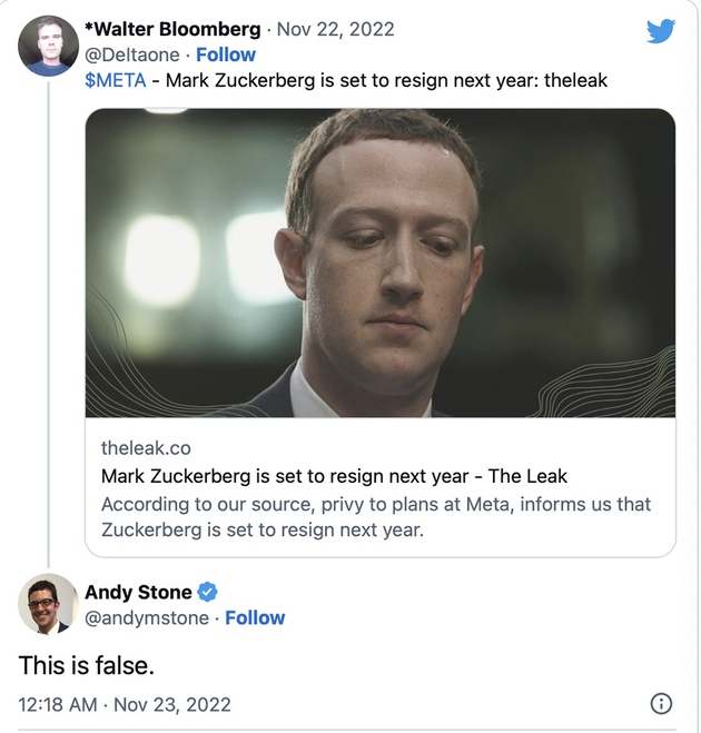 不过今天Meta公司发言人安迪·斯通在推特表示,有关扎克伯格将于明年卸任的消息是“假的”。