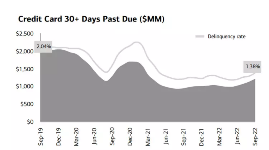 从消费者信贷数据来看,借款人的违约情况刚刚从疫情期间的低点缓慢回升,与疫情前的平均水平相比仍低了一大截。