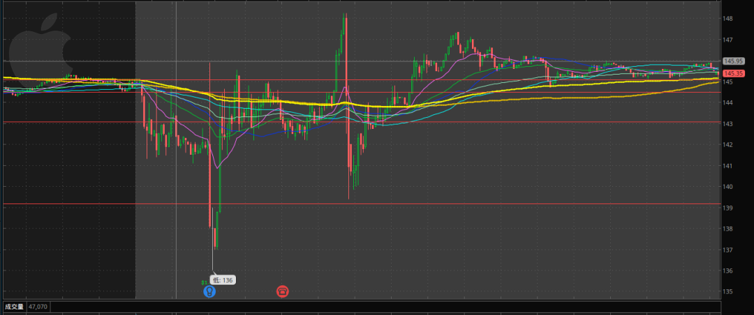 盘后苹果低开5%后买盘涌入反弹 0.2%,