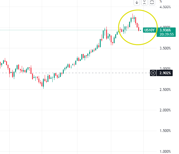 此外,另外一个重要信号就是10年前美债收益率已经连续几天出现回调,这是一个很好的牛熊切换的信号,利好科技股的估值提高。