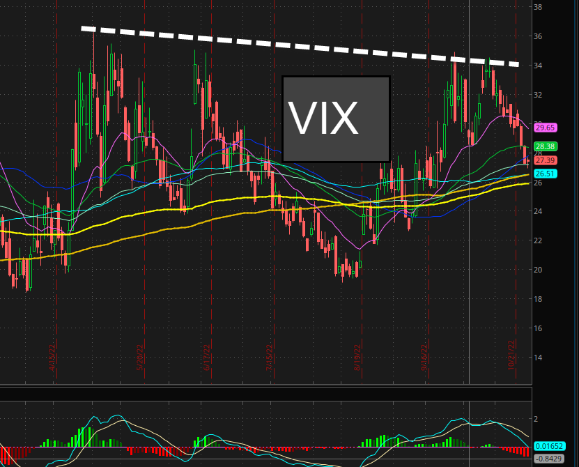 截止今天,硅谷五大科技巨头的财报都公布了,也算是一个重大利好出尽,至少在11月加息会议前,市场应该会有所回暖,因为我们看到这几天持续暴雷的科技公司竟然不会提高波动性指数VIX,意味着,市场开始对于接下来11月行情的股市见底的布局