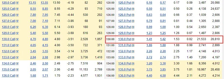 今天特斯拉股价暴跌超10%,看跌期权暴涨了4倍。我们今天在Vip社群提示大家,买入特斯拉的看跌Put,行权价130美元,当时价格 1.4美元
