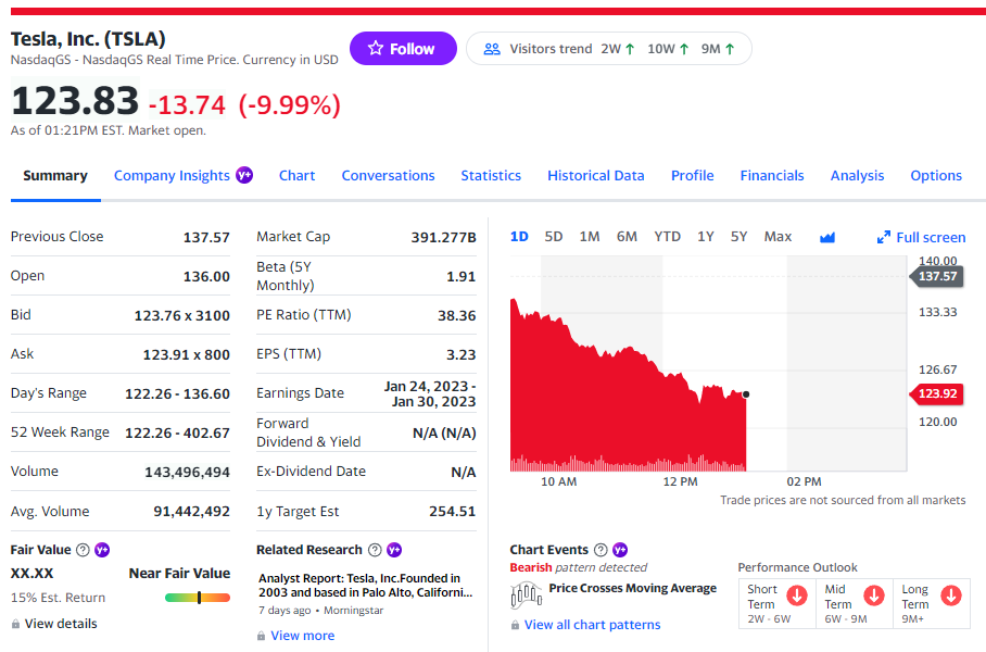金融分析公司S3 Partners的数据显示,特斯拉是2022年做空最赚钱的股票。多年来做空特斯拉的投资者在2022年累计暴赚150亿美元。到2022年,特斯拉空头的按市值计算的利润今年迄今增长了150亿美元,仅在12月就增长了45.4亿美元。