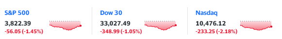周四美股三大股指再度集体大幅下跌,道指跌超720点或跌2.2%,标普500指数跌2.7%,纳指跌3.6%,芯片股跌近6%均刷新日低。三季度实际GDP年化季环比增速超预期上修至3.2%,上周首次申请失业救济人数回升幅度低于预期,凸显劳动力市场也未在加息的打击下改变强劲势头。