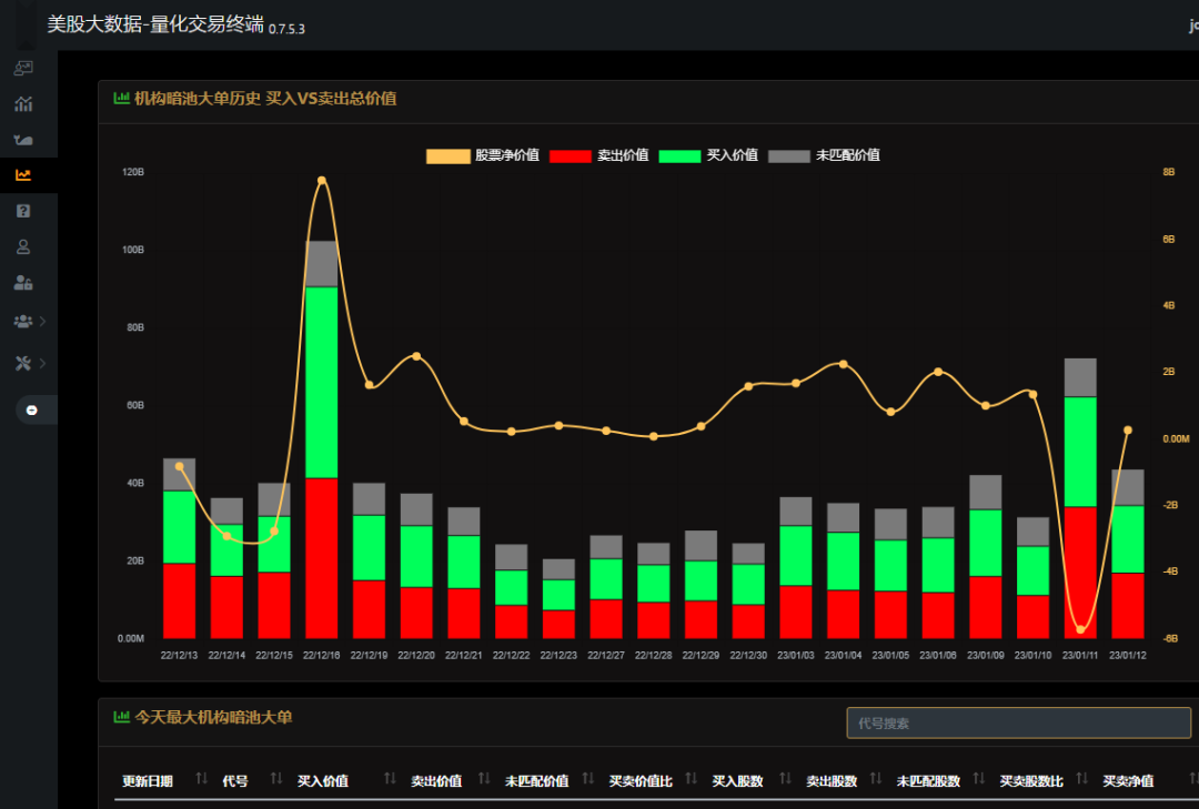 与其在市场上单打独斗,不如让我们为你提供华尔街机构每天都在用的大数据量化平台,查看机构暗池大单交易,期权异动