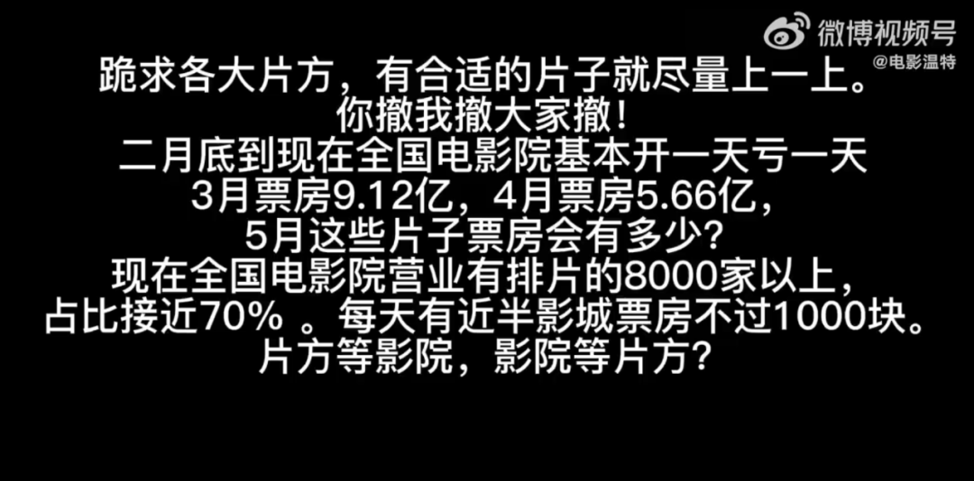 5月初,微博博主"电影温特"发布一则影城跪求片方上片的视频,引发网友热议。