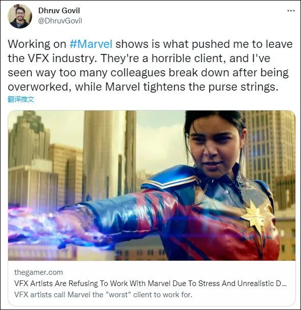 一名曾参与过《超凡蜘蛛侠2》《银河护卫队》《蜘蛛侠:英雄归来》特效制作,此后直接退出特效行业的员工更表示:“从MCU诞生之初,这种状况就一直存在。”