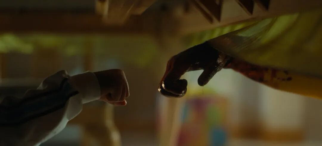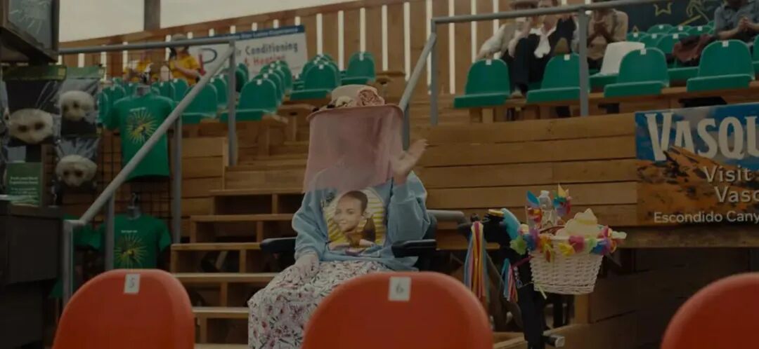影片开场,年幼的小朱在片场目睹黑猩猩受到惊吓,暴力攻击台上的演员。他因为被一块桌布遮挡住和猩猩对视,侥幸躲过一劫。动物反杀人类,还有那只立住不倒的鞋,这同样是让人啧啧称奇的“奇观”。经历黑猩猩事件之后,朱普没有陷入童年阴影,反而意识到这类奇观对观众有巨大的吸引力。成年后的朱普,收集了当年黑猩猩施暴现场的残骸,做成一间“展览室”牟利,展品中还有那只染血的鞋子。朱普在小镇里开设游乐园,他用活生生的马匹喂食外星人,以血淋淋的奇观吸引游客掏腰包。当每个人都忍不住抬头观看时,不明生物将全体观众吸入体内,包括自以为掌握了“流量密码”的朱普本人。不明生物的血盆大口,正如人们欲望的无底洞,它吸食一切,从硬币、钥匙、房屋到人类自己。熙熙攘攘的游乐园变得空无一人,被吸入高空的人们,发出了时隐时现的尖叫,最终变成一场倾盆而下的血雨——这也是全片血腥程度最高的一个镜头。时光君觉得,在银幕之外,当下人们追求的“奇观”其实有两类。