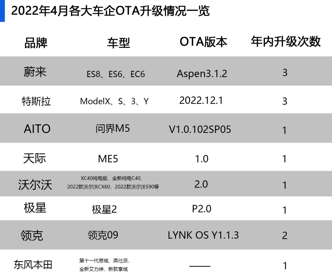 那么,在刚刚过去的4月,又有哪些车企进行了新的OTA升级?