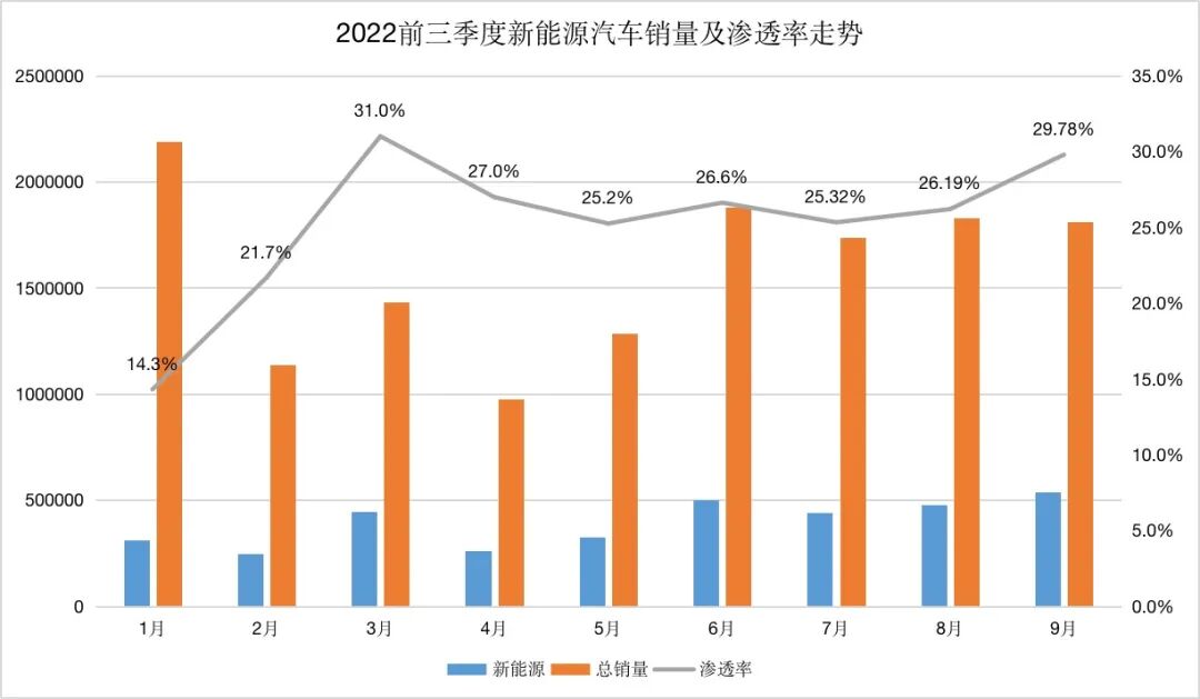 上险数显示,今年前9月,我国新能源汽车销量达到创历史新高的355万辆,累计渗透率也来到24.86%。全年销量极有可能突破500万辆里程碑,渗透率也大概率会提前实现25%的国家目标。