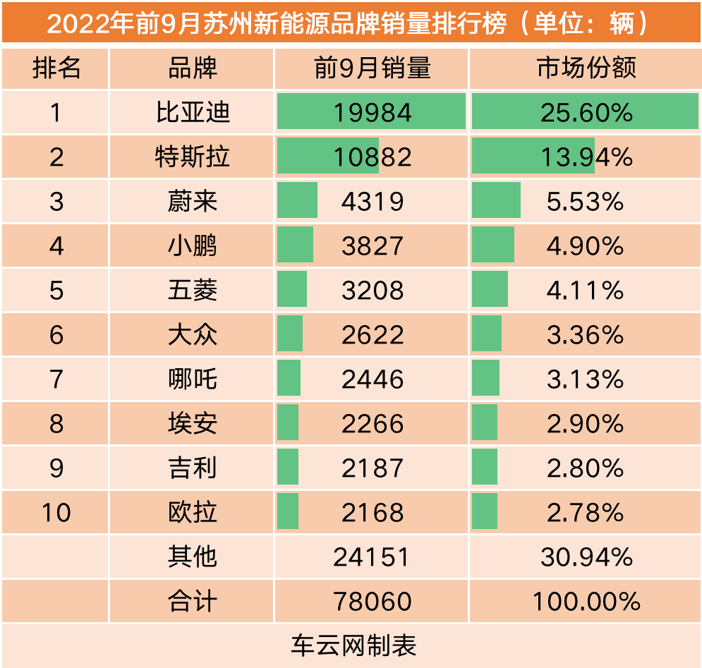在苏州,比亚迪和特斯拉仍是用户的首选。比亚迪前三季度在苏州的新能源车市场占有率高达25.6%,与上半年相比进一步获得提升,也比排名第二的特斯拉的市占率高出近12个百分点。