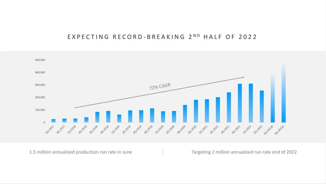 数据显示,在过去4年,特斯拉的季度产量保持着72%的年复合增长率,今年有望生产超150万辆汽车。但与丰田、大众等年产千万辆级巨头相比,还存在明显差距。