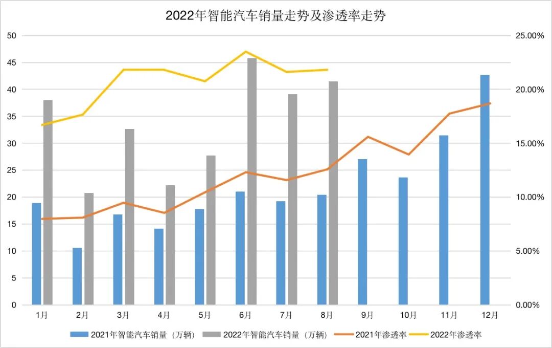 8月智能汽车的渗透率继续超过20%达21.8%,今年的累计渗透率也超过了20%达20.64%。今年智能汽车的累计销量已同比增长68.62%至267.86万辆,全年大概率会突破400万辆。