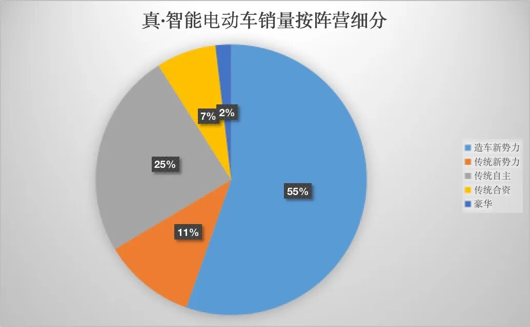 如果将真·智能电动车阵营分为造车新势力、传统新势力、传统自主、传统合资和豪华品牌这五个阵营,又会呈现出怎样的特点?