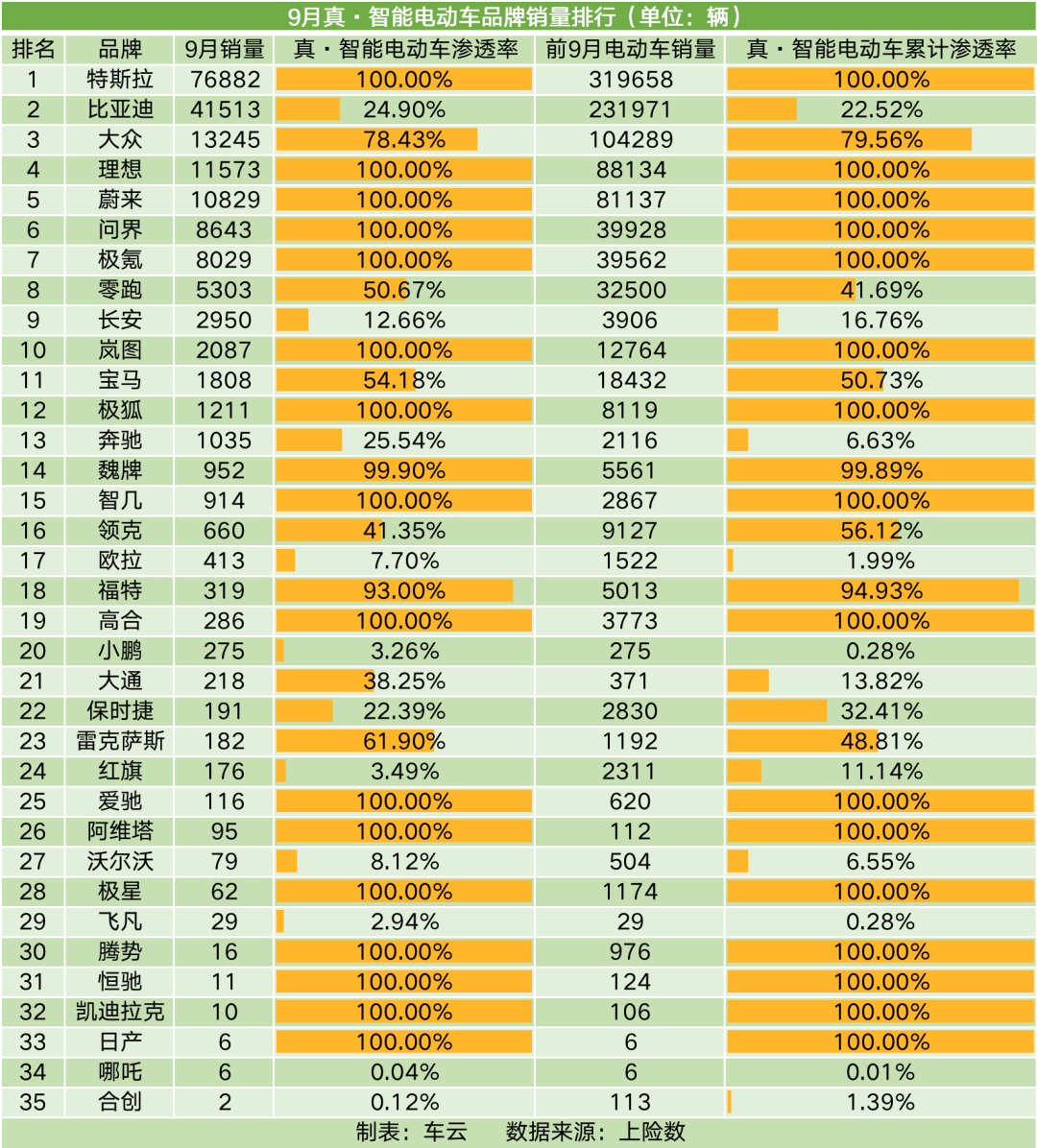 以下是所有真·智能电动车的9月销量,是否符合你的预期呢?