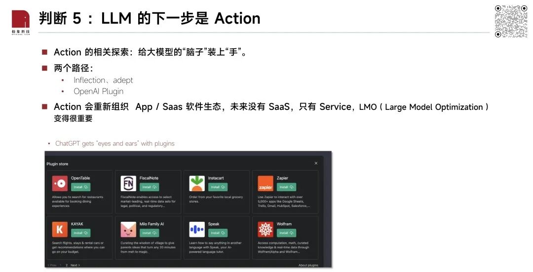• Plugin 有能力和先发优势定义大模型与应用互联的 api 标准,之后应用接入都会迎合这一标准;