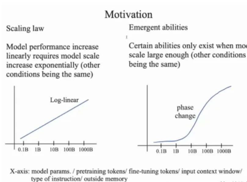 GPT 时期:Scaling Law 是 Beta,OpenAI 的前沿探索是 Alpha,成为语言场景下的通用模型。GPT-3 向大家证明了正确的技术路径下,大量级模型的突现能力。突现能力的表现形式是:模型参数达到 65B/175B 时,就像人的18/30岁突然会有能力和心智上的突破。这一现象被学者们不断的挖掘发现,其中比较典型的有:举一反三的能力、一步步思考地推理能力和理解人类意图的能力,在多个海外的大语言模型上被观察到:
