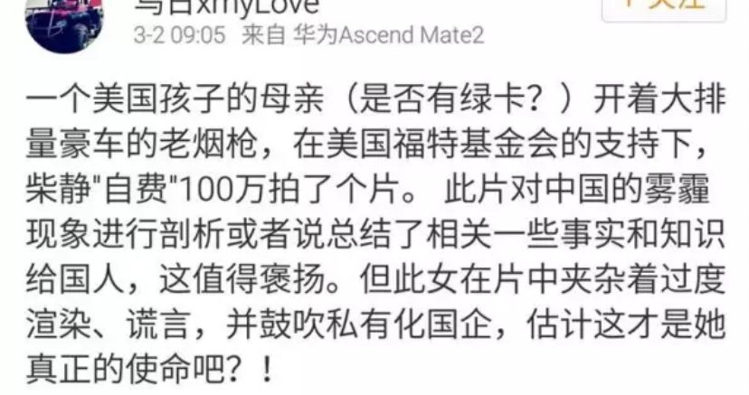 :网友企图通过“攻击柴静的动机”来证明“《穹顶之下》的观点不可信”。