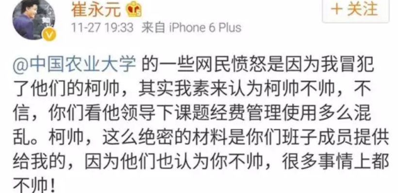 ,崔永元与中国农业大学校长柯炳生,针对转基因问题,在微博上展开激烈讨论: