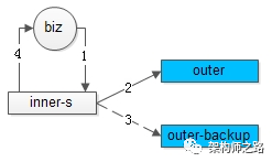 (3)超时后,调用第二个备份服务,未来都直接调用备份服务,直到超时的服务恢复;