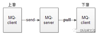 ”,上游将消息发给MQ,MQ将消息推送给下游。