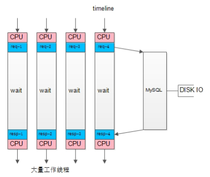 而作为异步MySQL客户端,向MySQL发送请求之后,线程就可以执行本地其他异步调用,或者发送下一个MySQL请求,无任何阻塞,