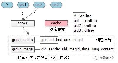 这个流程里,只要第二步消息落地完成,就能保证群消息不会丢失。