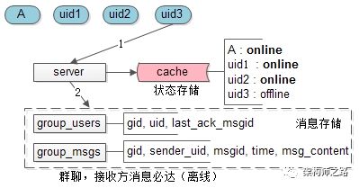 (1)一个群中有A, uid1, uid2, uid3四名成员;