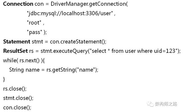 web-server层获取数据的一段伪代码如上,不用纠结代码的细节,也不用纠结不同编程语言与不同数据库驱动的差异,其获取数据的过程大致为: