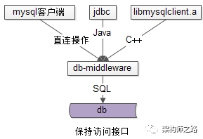 im业务对db的访问,统一到一个入口上来了,由中间层来对请求进行智能路由。更简化的,甚至可以初期同一个业务线的db读写都不对业务线透明,数据库中间层只做简单的请求转发,先初步的把数据库访问入口收拢到数据库中间层来,为后续的统一,再统一打下基础。(2.1)手工用mysql客户端连mysql,直连数据库执行命令;(2.3)c/c++使用libmysqlclient.a来对mysql进行访问;所谓保持访问接口,是指上游对数据库的访问接口完全不用变,中间件服务对上游来说,就是数据库。由于SQL协议是非常复杂的,在db的客户端与服务器插入了一个中间层之后,不一定能对所有的SQL功能都进行支持,支持哪些SQL是需要慎重考虑的。业务层不需要在关注读写分离,由中间件来进行读写请求路由。58的db的水平扩展,基本是用的分库的方式(分库比较好,很容易实现实例的扩容),即:db1.table