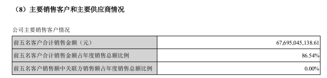 2021年年报显示,对前五大客户的销售额足足占了营业收入的86.54%,对最大客户的销售额占营收的42.49%。