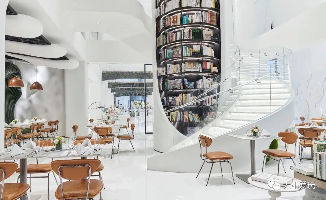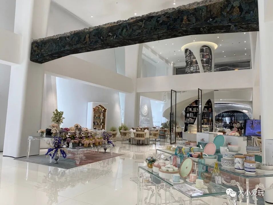 该去的博物馆都去了,该吃的好吃的都吃了,该玩的游乐园也都玩遍了吧?小爱家娃因为疫情,拥有了一个又一个假期……别说他,上面这些项目小爱都逛腻了。所以,现在遛娃根本顾不上管别的,只要有“新开”这俩字,就足够激动人心了。于是,在看到点评推送的新开超大家居馆“美克洞学馆”后,小爱果断带娃走起了。本来以为这里也就是一个拍照打卡网红地,去了以后发现,把它归类为“网红”真的是冤枉了它。在这个网红的外表下,人家超有深度的!美克洞学馆,是一个由穴居艺术(家居用品)、时尚餐饮(下午茶、酒吧、主题餐厅)和文化休闲(书吧、艺术文创)所组成的新零售艺术空间。目标是是为消费者提供居室文化的“五感”艺术生活方式消费用品及艺术体验。话不多说,正文看起吧!建筑面积3.5万方,如果你想仔仔细细地逛,连吃带喝地逛,玩一天也完全没问题。小爱去的时候是周末,停车完全不费劲,而且,开业期间还是免费停车哦!小爱去的时候是上午,没有喝咖啡,所以一到地方就先直奔三层露天餐吧了。想说喝杯咖啡,再开启遛娃“重任”。出了电梯,小爱就被镇住了(如上动图),这这这……完全是五星级酒店做派啊!(内心潜台词:这咖啡得多钱一杯……)不过,已经答应好了孩子要去吃蛋糕,也只能硬着头皮走起了。讲真,美克的阳光房颜值太能打!光是这个颜小爱就已经决定,找个时间不带娃,跟闺蜜来这儿约个会。没想到的是,餐饮的价格也完全可以接受,咖啡在20—35元之间,小甜品也跟一般蛋糕店差不多,完全可以接受。小爱和猪队友果断一人点了一杯咖啡,然后拿起他们家菜单细细研究了起来。菜式完全符合洞学馆主打西域丝路的理念,乍一看非常像新疆菜……主菜非常横,很多大肉,完全符合猪队友的品味……其实人家是西域龟兹、俄罗斯、意大利、希腊、波斯五个丝路沿线国家的风味饮食集合,只不过猪队友只知道羊肉串儿而已……价格也不是高到不可企及的程度,人均150—200元左右吧,小爱计划找个时间带全家人来吃一吃。而且,这个餐厅的氛围,请客的话真的是超有面子……三层主要售卖适合小户型的家居产品,大部分产品都非常实用。相比宜家和其他北欧风家居产品,更有设计感,质地也更考究。这层主打美克旗下Markor Light品牌,价格相对二层、一层的产品更亲民。百元左右的小玩意儿有很多,遇见心怡的小单品或空间套件的概率很高。总结一句话就是,逛着逛着总想花钱……小爱最喜欢这里的是它开放式的样板间,一眼看过去,能够直观地对比出各个风格。相比那种一间一间逛到头晕的,这种更适合没什么装修儿童房经验的新手养娃小夫妻。而且,儿童区域还有很多娃喜欢的小摆件,小桌椅。它们很多都是以小动物的形象出现,孩子们都喜欢得不得了。完全把这里当成了游乐园,在各种小动物之间欢腾着。小爱最喜欢四层的是下面这个书房区。Markor Bazaar是个多功能文化休闲空间,集咖啡、简餐、阅读、文创活动为一体。据说将来会有饮品、西点提供,粑粑麻麻可以在这里阅读前沿书刊,杂志。而且,它的样子简直是小爱梦想中的书房,灯光柔和,座椅舒适。现在这里人还不算特别多,您完全可以带上两本喜欢的书,踏踏实实坐着读一读。穿过这一片由图书和花朵书签组成的墙,就抵达了另一个拍照打卡点。很多年轻的小情侣、小闺蜜们在这里拍照。很有后现代的感觉,墙上的字也很戳中小爱的心声。如果想在新的一年,幸运连连,不妨来这里拍张照,图个好兆头吧。馆内的共享区域,随处可见各种形式的艺术品,雕塑、版画、铜器等等。这是因为,美克洞学馆的理念是,艺术不该脱离生活而存在。你或许会觉得,一个家居馆的艺术展有什么可看的?小爱一开始也是这样想的,可去了以后,它却大大颠覆了小爱的刻板印象。光用嘴说,难以取信于人。于是小爱特地“祭出”了小爱编辑部——的设计师——的家属——摄影师许愿(强行自愿)的作品,来给大家展示!它们锃光瓦亮,内部结构严丝合缝,如果您家有个秃小子,估计双眼都能看直了。如果您喜欢拍照,还可以在美克的旋转楼梯拍个够。小爱去的当天,就有不少人在这里排队拍照……完全抢不到的说……不过小爱家娃本来对拍照也没啥兴趣,二层更吸引她的是童梦乐园。这是一个专门为孩子打造的区域,柔和的线条和各种动物造型的家居产品,把这里变成了一个童话世界。好多小朋友都跟这些动物小木马玩得不亦乐乎。现在人还挺少,每个孩子都能找到自己玩耍的空间,趁着现在赶紧去吧。他位于美克洞学馆主入口上方,作为建筑内部的采光井。将建筑顶部的自然光引入室内,随着时间的变幻,墙上的光影也随之流动。这幅巨大的壁画有种让人忍不住盯着发呆的魅力,看着的感觉仿佛是千年时光在画幅中流转。如果您是从一层开始参观的,那么首先看到的就会是上图这些横梁壁画。设计师将龟兹壁画与原有建筑结构结合,每根壁画都承载了丰富的内容且大面积使用墨绿色,与周围洁白的环境形成强烈的色彩对比,具有非常强的视觉冲击力。这里还有一座石窟云梯。它联通地下一层和二层后庭的楼梯,内外双旋转结构设计。云梯外侧是由洞岩壁画作为装饰,内侧由龟兹壁画中“石绿、青金石、朱砂”三种矿物颜料构成。神秘感满满,走在其上,经常会产生不知身在何处的错觉。西域峡谷位于三楼中庭采光顶,但最佳