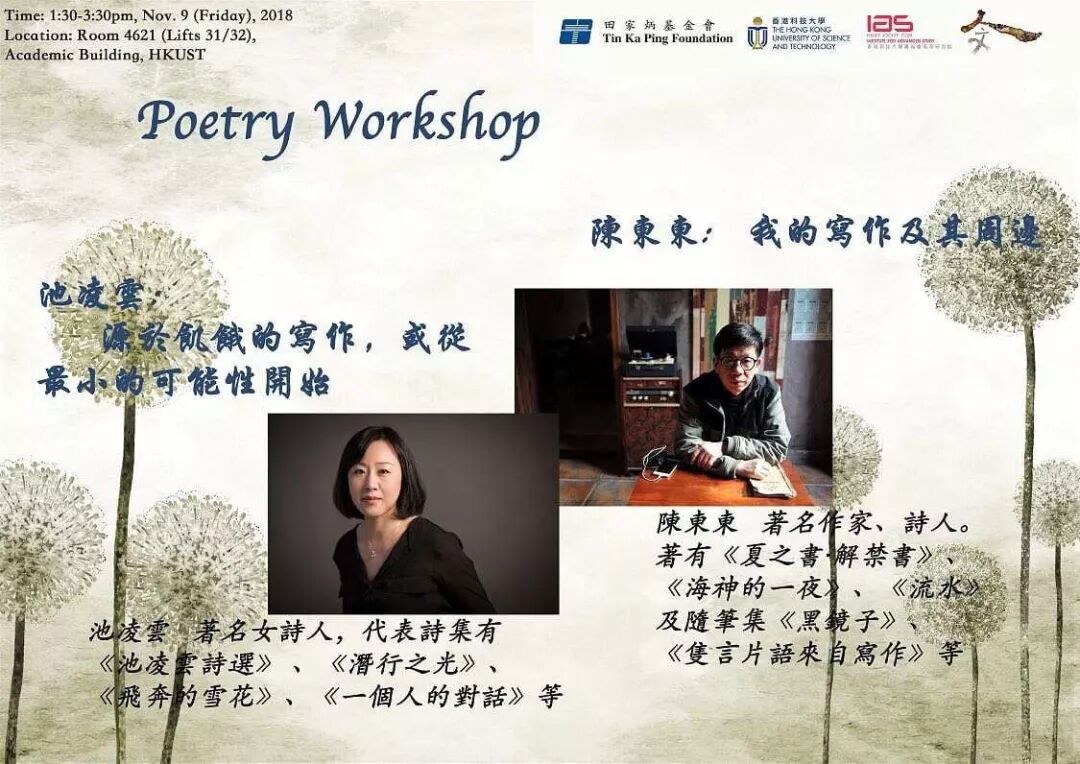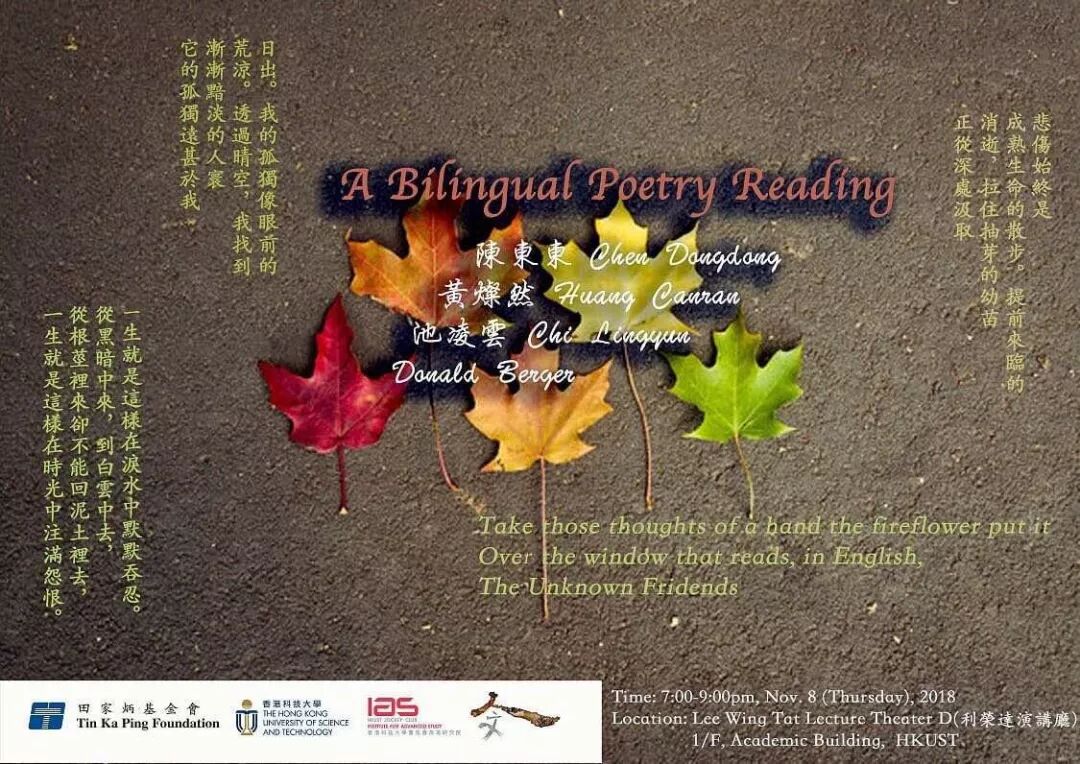 | Speaker(s) | : | 陳東東 CHEN Dongdong 黃燦然 HUANG Canran 池凌雲 CHI Lingyun Donald Berger |