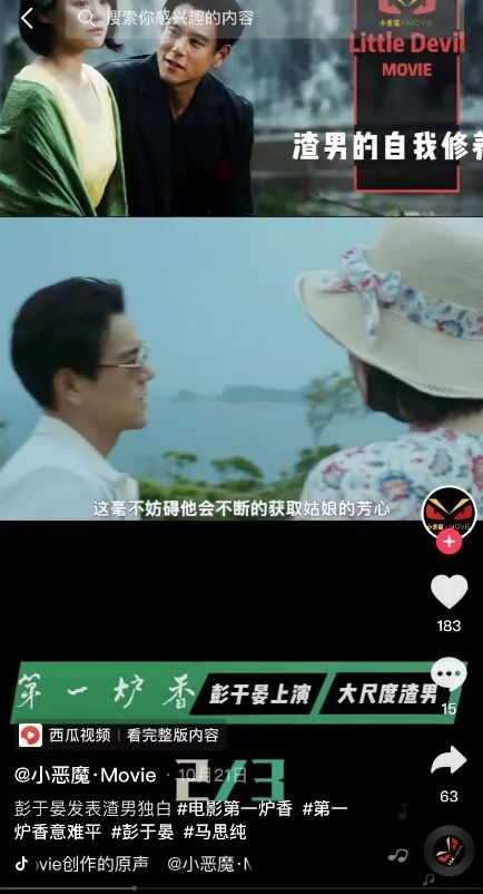 那么,《第一炉香》究竟是烂片还是神作?一部顶级配置的影片为何会引起如此大的争议?我们又该如何看待比电影本身还精彩的“狂欢式吐槽”现象?口味的两极分化:大师们的集体翻车还是颇有意味的改编?《第一炉香》是张爱玲的代表作之一,但是相较于耳熟能详的《倾城之恋》或《半生缘》,这部小说又不是那么的广为人所知。在原著中,女学生葛薇龙为了留在香港继续求学,投靠了与亲戚断绝关系多年的、富有寡居的亲姑母,并在姑母的影响下进入交际场,一步步堕入深渊。“爱情战争”是张爱玲小说永恒的主题。张爱玲笔下的爱情是裹挟着情欲与物欲、真情与算计的混合体。女性在“低到尘埃里”的、决绝的情感中败给男性,却以此确证着自身的存在。但是在电影《第一炉香》中,这种决绝的情感变得笨拙又或低级。对《第一炉香》的吐槽首先集中在选角上。从“第一炉钢” “骆驼祥子”,到“彭于晏在垦丁,马思纯演左耳”,从身材服装到演员演技,没有一个能逃过网友们妙语连珠的点评。除了演员不合适,《第一炉香》更广为诟病的是“青春疼痛文学”的台词,在这一点上,电影呈现出的质感与下沉的宣发策略相当一致。电影的英文名是Love After Love,爱了又爱,核心宣传语叫“爱是比深爱更深的不爱”,定档21.10.22 寓意“爱你是爱而不得”。而主演马思纯的微博里,“爱不是一个人的卑微,而是两个人的勇敢”也早就预告了“青春疼痛文学”的画风。![]()