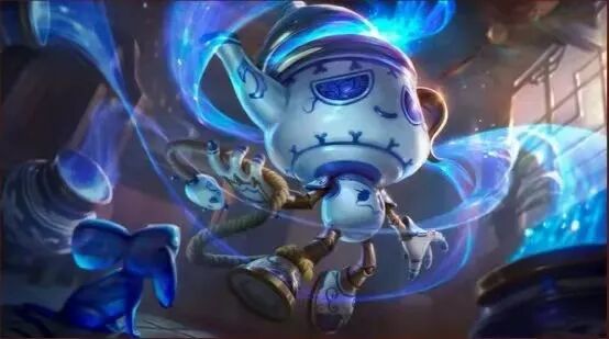 比如,被设计成一个青花瓷茶壶形状的阿木木开启大招后会出现山水画图案,在其回城时茶壶造型又会变成一地碎片,寓意岁岁平安,丽桑卓身着一袭青瓷旗袍,搭配莲花底座,在释放大招时还会将自己包裹成一个青花瓷壶,种种巧思,令人叹服。