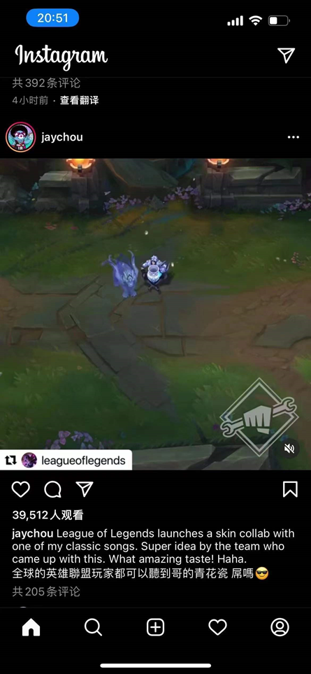 1月21日,青花瓷主题皮肤正式上线,周杰伦在INS发文,称赞《英雄联盟》品味好,邀请全世界玩家到游戏内欣赏他的中国风歌曲《青花瓷》,隔日话题#周杰伦夸英雄联盟品味好#登上微博热搜第九位,阅读量超8000万,大量海外玩家用户第一次通过LOL认识了国风歌曲《青花瓷》。