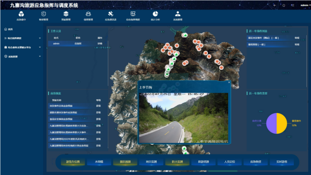 项目介绍:九寨沟景区智慧旅游大数据综合管理平台项目汇集了灾前抗逆力、灾中适应力、灾后恢复力,创建高质量发展的韧性旅游景区。项目包括智慧基础设施、遗产监测与保护应用、应急指挥与调度应用等9个大类、49个分项的建设,实现了与智慧生态、地质监测、病虫害监测、森林防火等数十个系统的对接,完成了动植物、地质灾害点位、病虫害点监测位等数百项数据的分析处理,建立了九寨沟灾害韧性因子数据库,制作灾害事件唯一的特征蜘蛛图谱。2021年12月,该项目的全部子系统投入运行。项目用户群体涵盖游客、OTA机构、政府部门等,基于模块化思路进行开发,具有较高的可复制性。