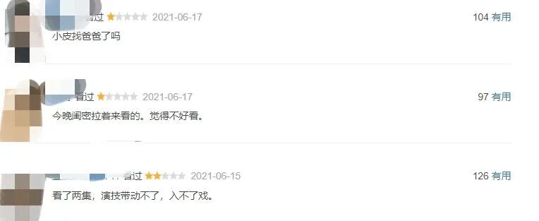 水军也曾出现“刷错了”的尴尬情况。《亲爱的药王大人》豆瓣短评列表中,出现了大量为《以家人之名》而写的四、五星短评,进而被网友质疑《以家人之名》的评分。“《以家人之名》这么火,还需要刷么?倒是那什么剧,根本没听过,别不是反向营销吧”,也有网友如此表示。