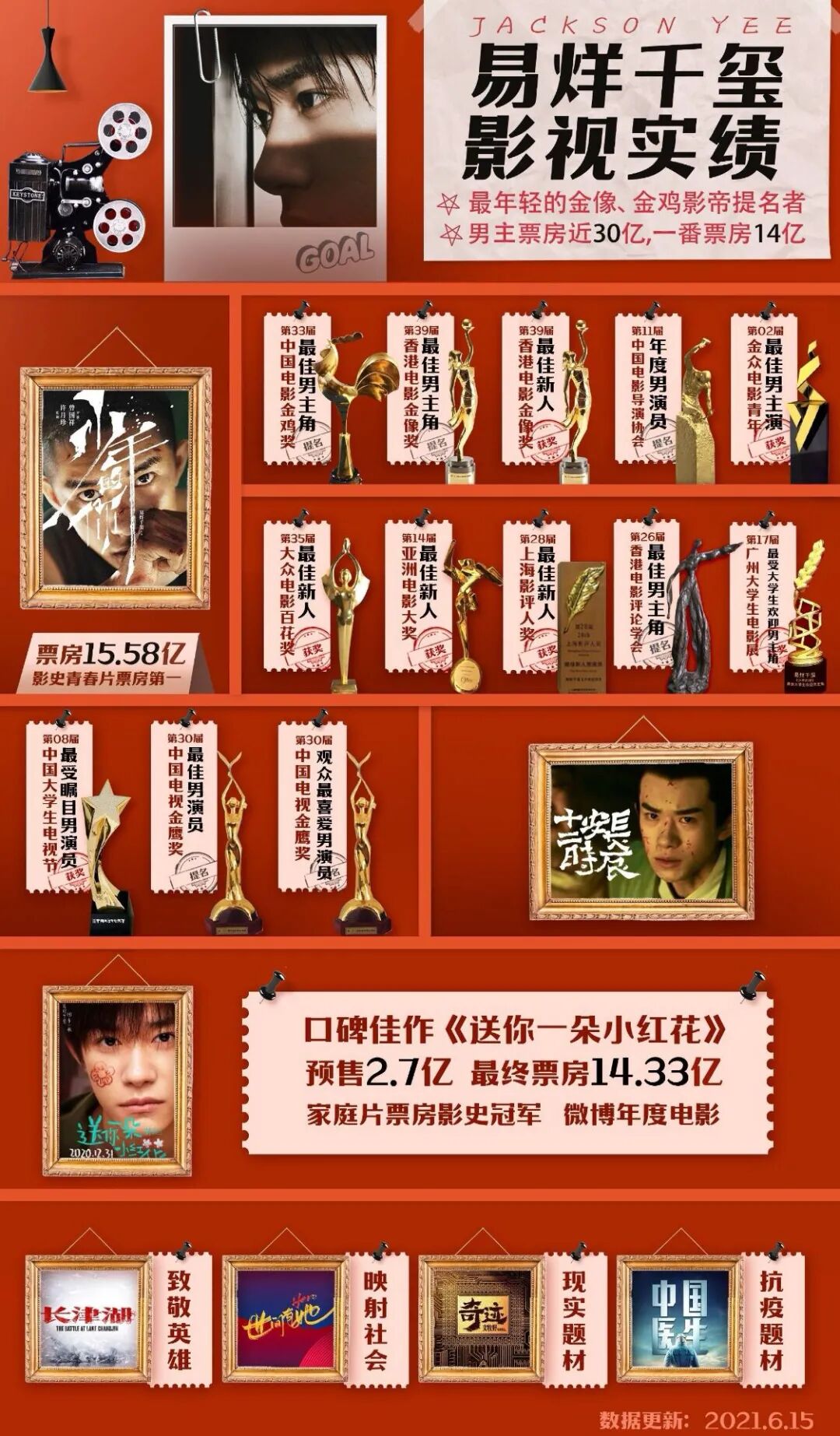 豆瓣上,《少年的你》《长安十二时辰》等相关影视剧的短评中,提及易烊千玺的比例十分高,至于“战绩表”更是不俗。