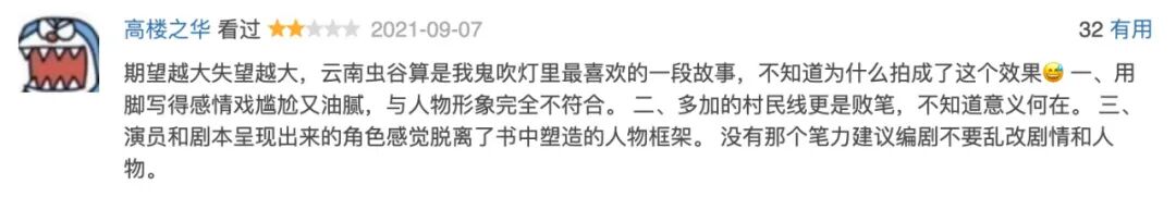 由于期望过高,随着剧集播出,不少观众开始对《云南虫谷》感到失望,并给出差评: