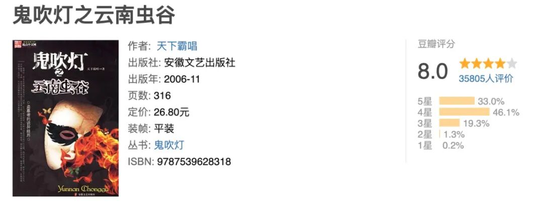 △《云南虫谷》原著小说豆瓣评分8.0,剧版改编6.5