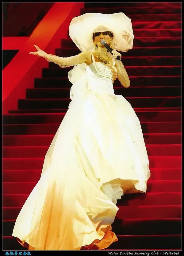 △梅艳芳在她人生最后一场演唱会上穿着刘培基专门为她设计的婚纱