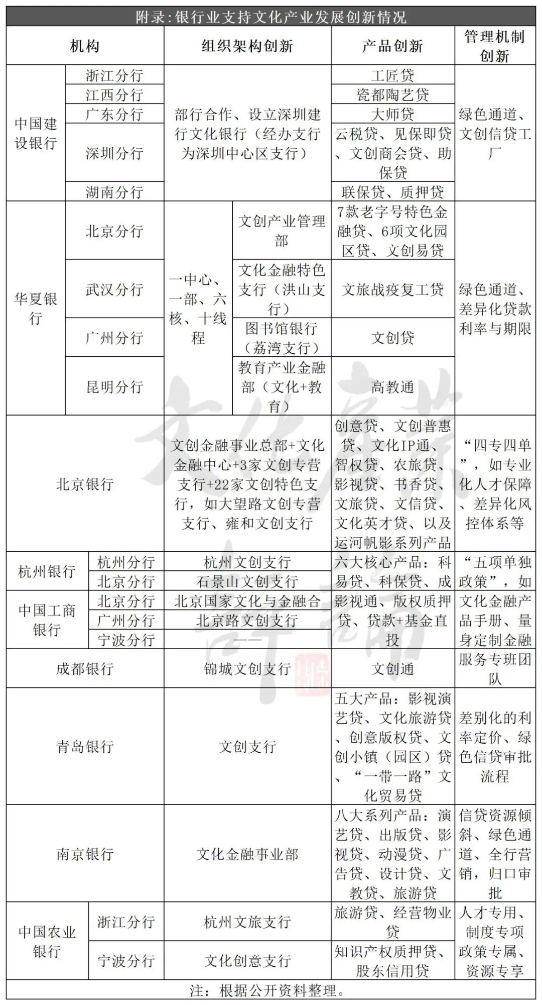 2、中国银行业协会调查显示:2020年,30家银行创新产品主要包括文创贷、影视贷、知识产权质押贷款、商标权质押贷款、艺术品质押贷款、著作权质押贷款等10个种类。