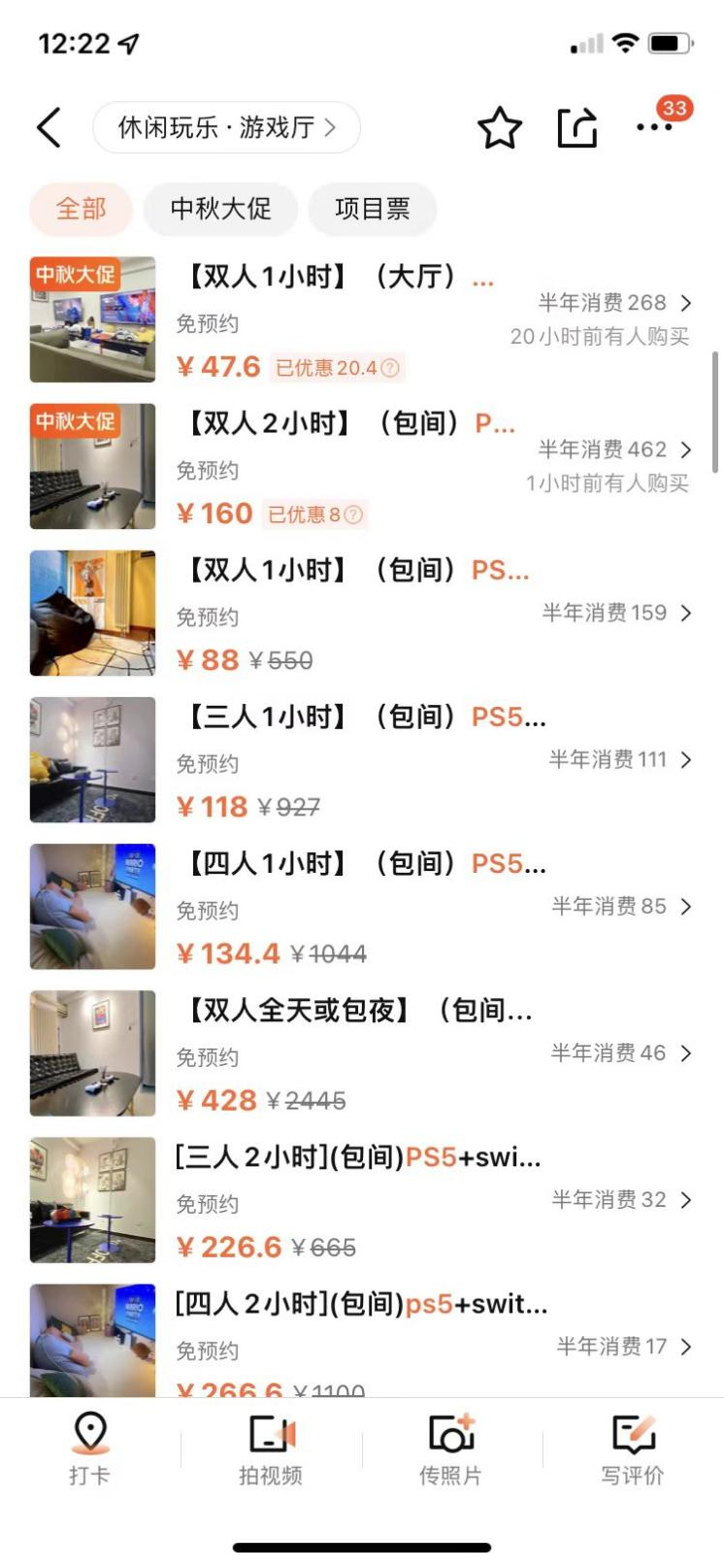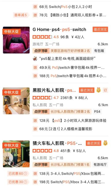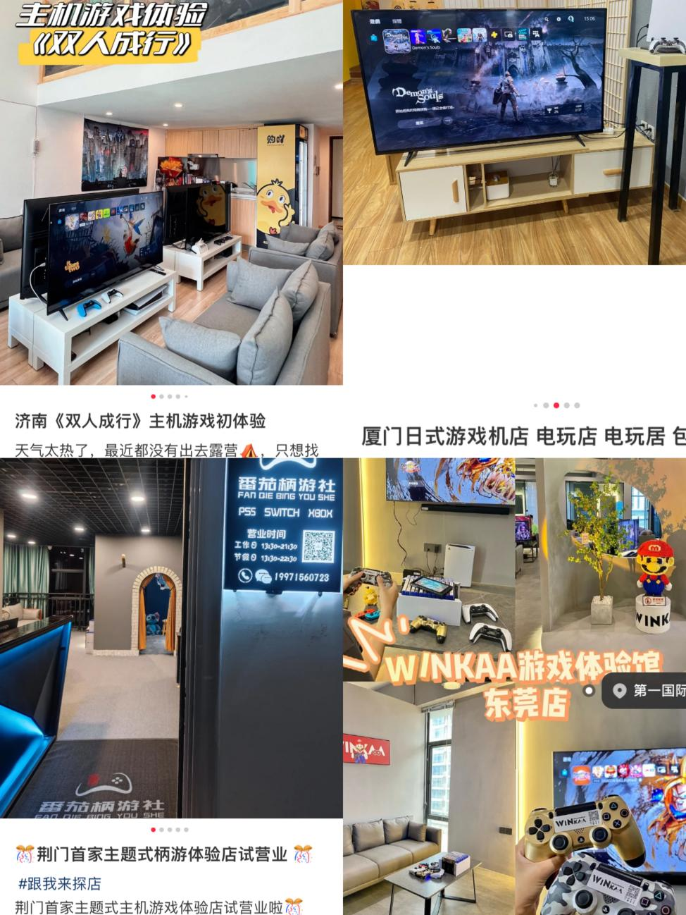 在点评或地图上搜索“PS5”“Switch”“主机”等关键词,搜索结果大多是以“主机游戏体验馆”“PS5,Switch体验馆”“主机体验馆”为后缀的纯享主机游戏馆,剩余仅仅只有20%左右的店铺在提供主机以外的,如点播影院、迷你KTV、桌游等多种年轻人喜爱的室内娱乐的综合性娱乐场。