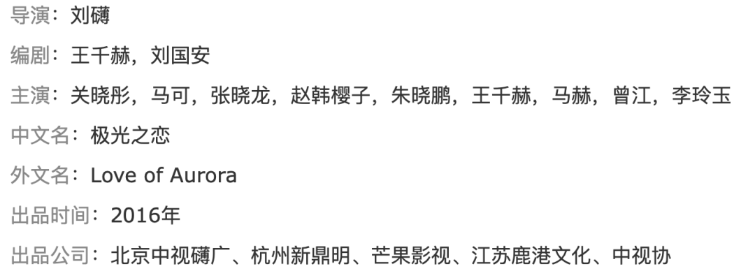 从出品名单来看,不少投资人都被这部作品的精神内涵所感染。在百度百科《极光之恋》的出品名单中,100%控股北京中视礴广文化的杭州新鼎明文化传媒有限公司,和彼时已上市6年的影视公司江苏鹿港文化也名列其中。芒果影视、中视协也是该剧的出品方。