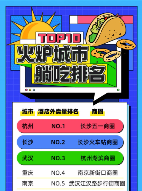 饿了么发布的《2022年火炉城市外卖消费趋势》报告显示,上半年旅游城市酒店外卖订单量环比增长了三成,“躺吃旅行”越发成为旅行常态。